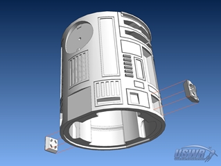 U.S. Water Rockets is proud to release this nearly ¼ Scale accurate droid replica for 3D printing. This replica robot from the Star Wars Universe was designed to be the most detailed and accurate 3D Printable Astromech droid you can print, with exceptional detail lacking in other printable models. This project was inspired by some of the replica prop builds done by Adam Savage, featured on Tested.com and YouTube. The design was created completely from scratch, using reference stills from the movies and drawings available online produced by the R2 Builders Club (astromech.net). The design and build took place over the course of several months as a learning project to explore the limits of FDM 3D printing, and learn how to break down a complex design in order to print it with greater fidelity. A side benefit of this process is that it enables a much larger print to come from a small 3D printer.| Part | Quantity | Printing Notes | |
