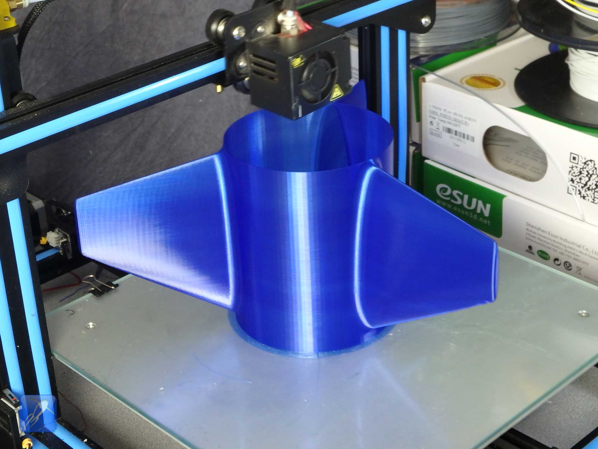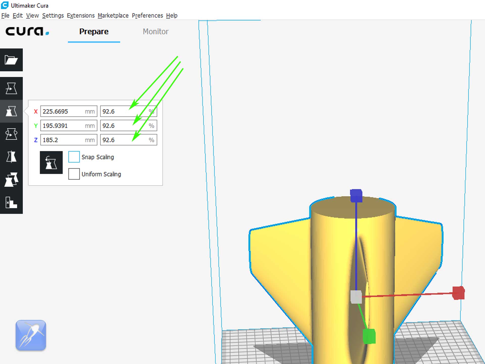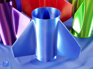 compensate for the variations, so we withdrew the model and went back to the drawing board to come up with something much better. The Universal Fin Can.The Universal Fin Can is superior to both of our previous attempts because it is both strong and lightweight, and looks amazing. The universal fin can is designed to take advantage of a seldom used setting in your 3D printer's slicer to generate a fin can that has the most desirable combination of properties. It's extremely rigid and also very lightweight. This design takes advantage of the principal of structural skin, where the tensile and compressive loads are completely supported by the skin of the structure, like an egg shell. The setting you need to use is called "Vase Mode" or "Spiralize Outer Contour" mode. Every popular slicing program has a mode similar to this, and it creates an object by extruding a continuous perimeter layer in a spiral pattern from bottom to top. This mode produces beautiful prints with single extrusion width walls very quickly, which is perfectly suited for this application. While the fins were stong and looked great, we still had to tackle the issue of fitting every bottle easily. We realized the answer was to scale our current design such that it fits a theoretical 100mm diameter bottle, and then every other bottle size becomes a simple percentage scale of that model. Any diameter bottle can easily be supported by simply using the "scale" feature of your slicing software to scale by the diameter in millimeters expressed as a percentage. For example, an 83.5mm diameter bottle would be 83.5% scaled. A 135.3mm diameter bottle uses scaling of 135.3% in the slicer, and so on. You can also experiment with setting the height scale to different values if you want to make the fin can longer or shorter. If you can measure the diameter of your bottle, you can make a Universal Fin can that fits! You can find a link to this model on our thingverse page [https://www.thingiverse.com/thing:3223207]. But before you print your own, there are a few printer settings you should be aware of. When you enable the "vase" mode in your slicer, you should disable printing the top and bottom of the print, otherwise your fin can will be capped off at the bottom, like a vase. If there's no setting to directly disable printing the top and bottom, you can set their thickness to 0 and they should not print. Another issue to look out for is warping on larger diameter fin cans. This is caused by the plastic shrinking as it cools and creating stresses in the print. Adjusting the temperature lower can help, and failing that a larger bore print nozzle size can eliminate this issue. It's also a good idea to print a small portion and then cancel the print, then test fit the resulting print before wasting time and plastic on a slightly incorrect scale. If the print is a touch small, then scale up a fraction of a mm and try again. Scale down if the print is too large. Eventually, you will find a print scale with a perfect fit for your bottle and you can go ahead and print the whole thing. Once your Universal Fin can is printed, you can slide it on your bottle and glue or tape it in place. After that, it’s ready for launching! 3D Printed Universal Fin Can Video Tutorial: